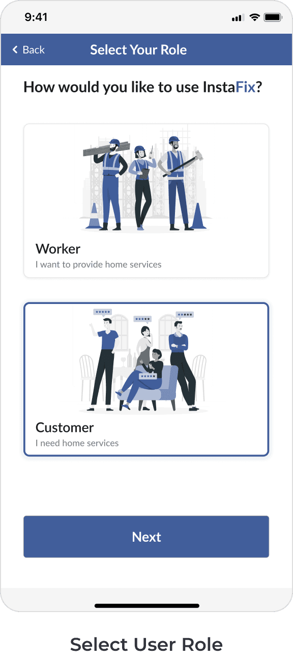 In my role as a designer for InstaFix, I focused on enhancing the user experience through UX design, visual design, user research, and wireframing.