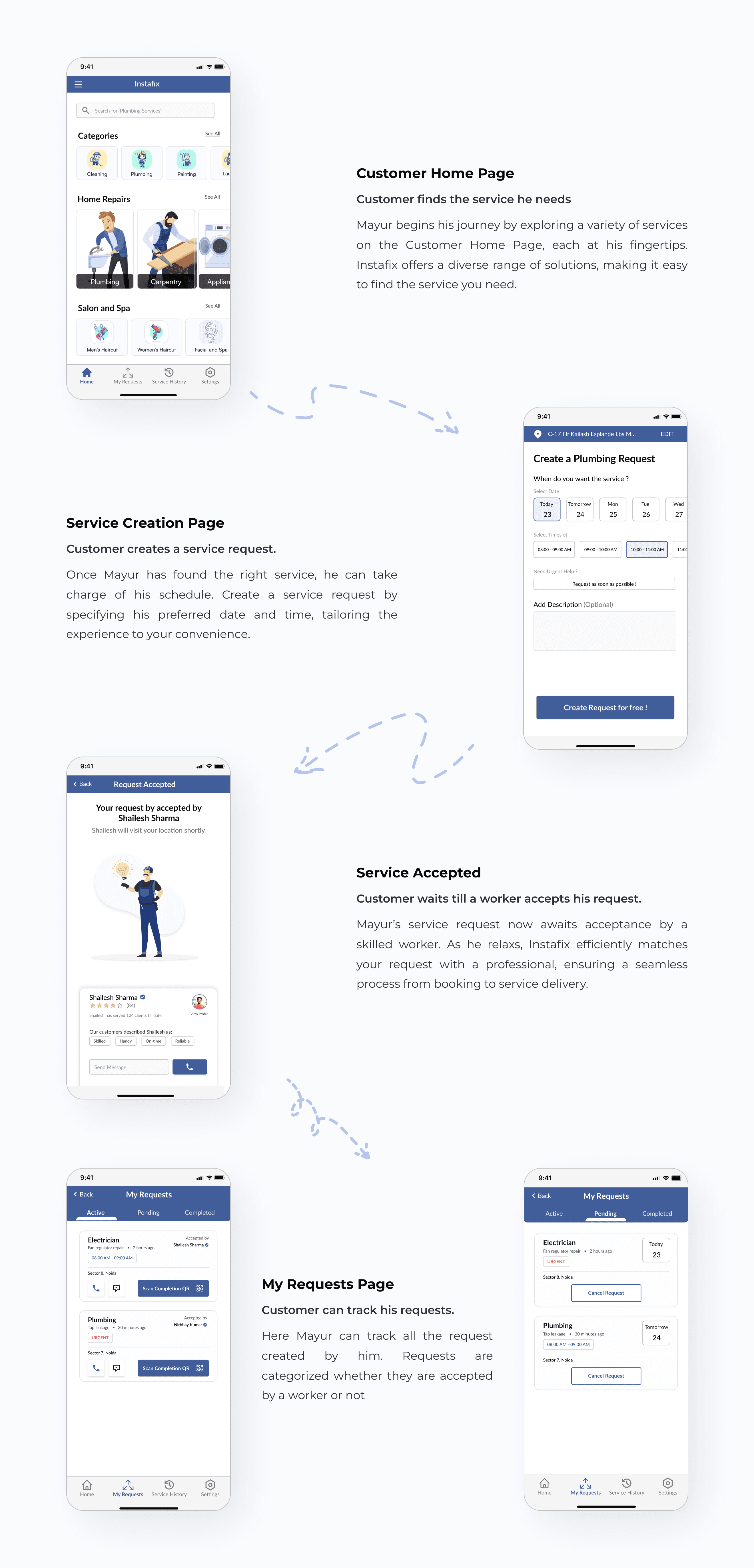 This vision led to the creation of InstaFix, an innovative platform that empowers users to request a wide range of services with ease.