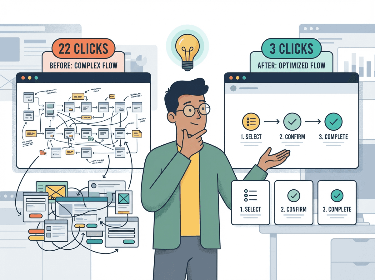 Redesigning the flow: from 22 clicks to 3