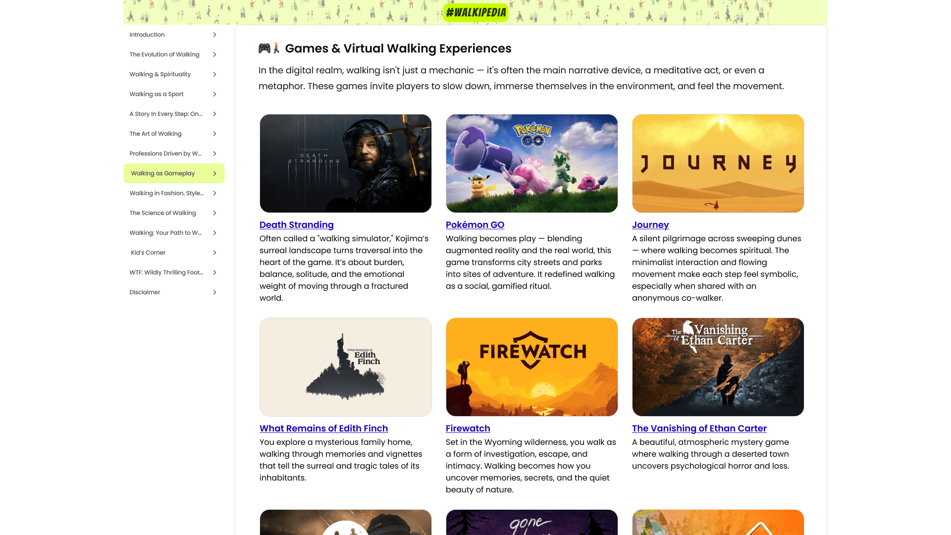 My friend Rhea led the editorial vision and wrote the Walkipedia content, and my job was to turn that into a cohesive product experience – designing the information architecture, page layouts, and visual system, and then handing detailed specs to engineering to bring it live on the site.