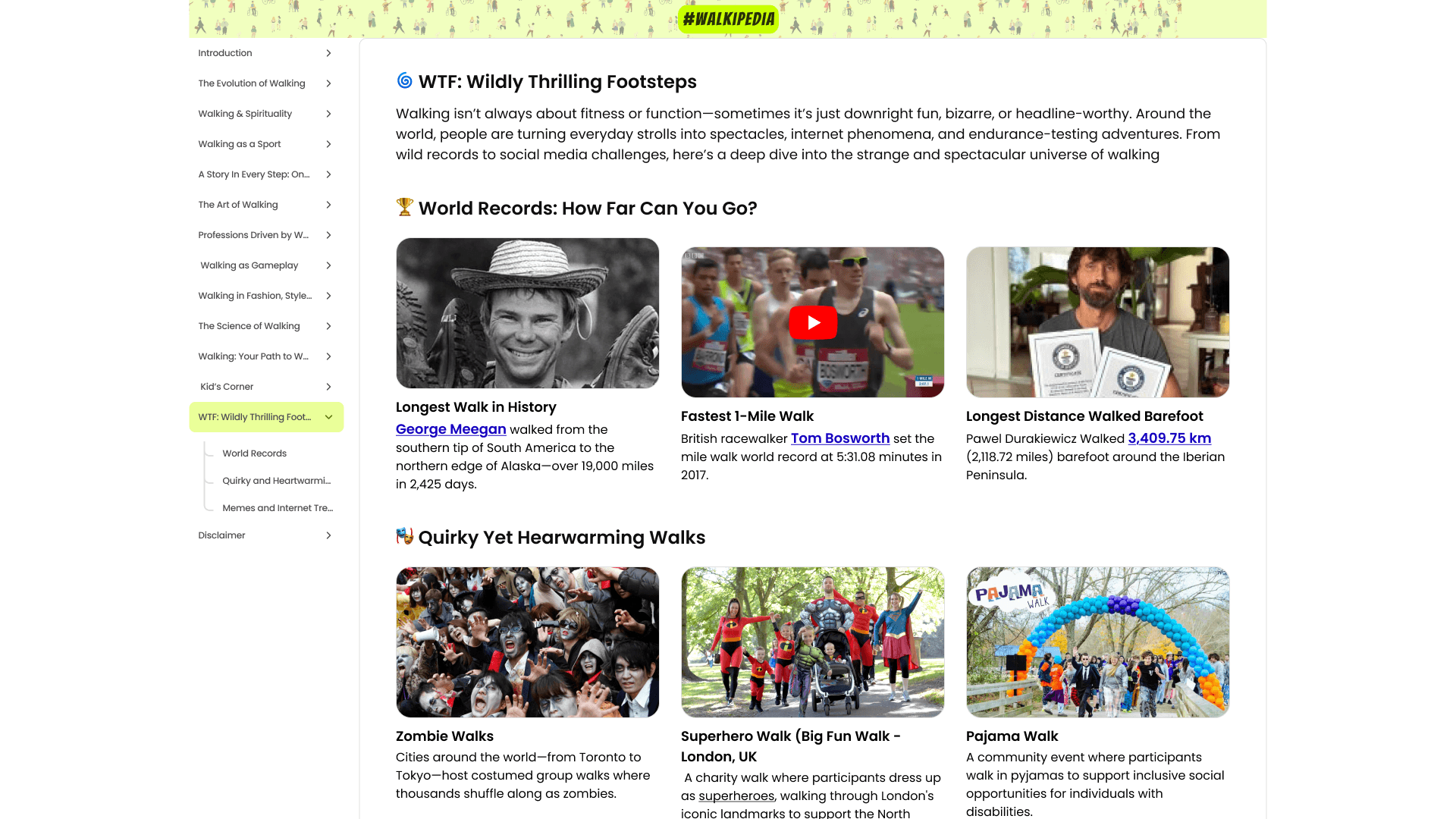 To make #JustWalkIndia feel like a living culture, not just a one-day event, we created Walkipedia – a walking-only encyclopedia that curates history, rituals, health science, and fun trivia related to walking in India and beyond.