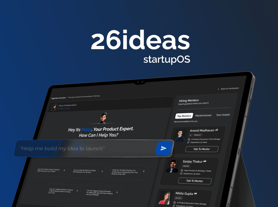 StartupOS is 26ideas’ AI-powered operating system for young founders, combining guided pathways, AI co-founders, and asset generation to help turn raw ideas into fundable, go-to-market-ready startups.